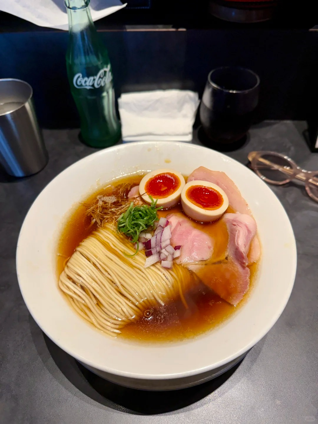 如果你是醬油拉麵派,這間在拉麵迷之間討論度超高的「Homemade 麦苗」絕對值得排進東京拉麵清單!店家在日本美食評價網站 Tabelog 的東京拉麵百大榜單中名列第 3,可說是許多拉麵控心中的朝聖名店。雖然地點已經接近川崎、離東京市區有點距離,但人氣依舊高到不行,招牌醬油拉麵金黃色清澈湯頭看似清爽,實際卻藏著滿滿功夫,湯底以雞高湯為基底,融合柴魚與多種海鮮熬製而成,入口能感受到層層堆疊的鮮甜與自然油潤感,純粹用食材堆出深度。配料部分則鋪上微微炙烤過的牛肉與豬肉叉燒,粉嫩色澤看起來就讓人食慾大開,肉質軟嫩、香氣十足,整體風格是典型又精緻的東京系醬油拉麵!