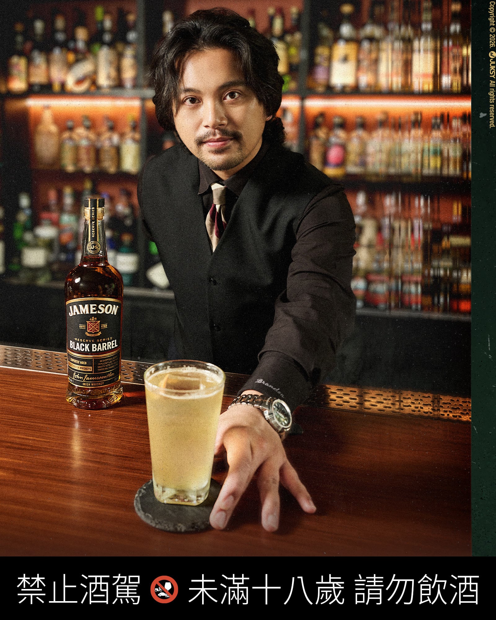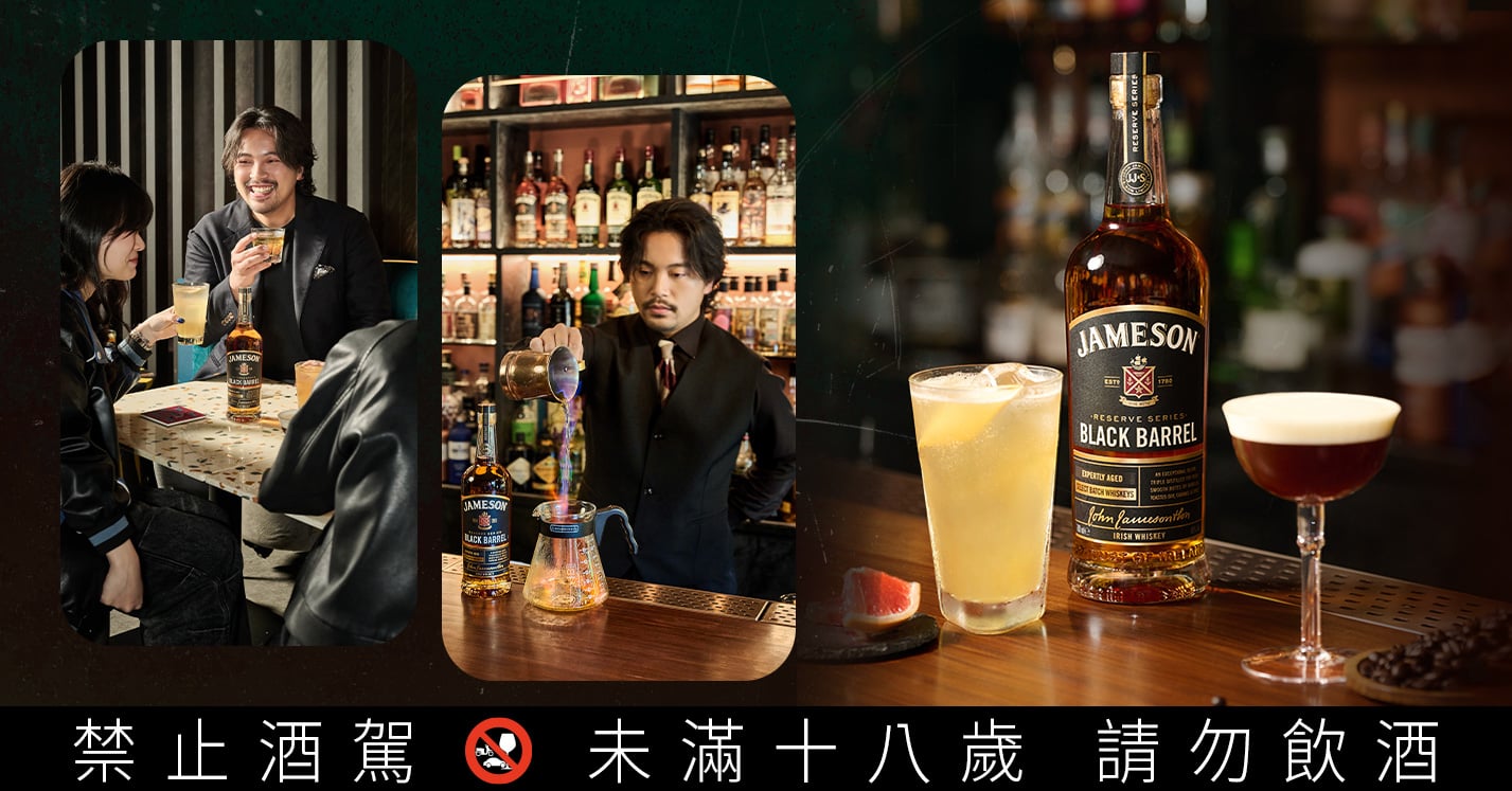 以調酒師的角度來說,Jameson 是一份品質保證,而 Jameson 的「黑桶威士忌」則是這份保證的「進階版本」。這份進階感不只是口感的升級,更體現在工藝與生活態度的扣合——黑桶特別精選每年僅蒸餾一週、極其稀有的「小批次穀物威士忌」進行調和,這種對產量的克制,正如同 Brandon 對下班後社交品質的挑剔:最精華的時間,就該留給那群最對的朋友。